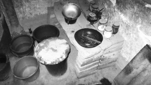 廚房里,半米高的灶臺(tái)落滿灰塵、一個(gè)盆里盛著涼拌的韭菜。老韓說:“家里有十幾年沒有炒過菜吃了,都是腌菜或者涼拌菜!