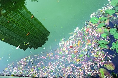 內(nèi)秦淮河河面上的死魚。 范曉林 攝
