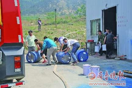 工廠職工正在轉(zhuǎn)移著火點隔壁倉庫里的化學(xué)危險品。 本報記者 孔紅星 攝