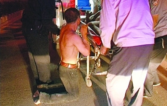 面對(duì)眾人幫忙救助墜樓妻子,侯某多次向眾人下跪感謝。李海勇 攝
