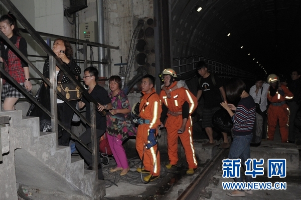 9月27日,救援人員在上海地鐵十號線事故現(xiàn)場疏散乘客。新華社發(fā)(鈕一新 攝)