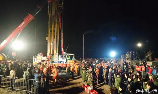 日子一天天過去,在渴望與絕望交替的焦灼里,華明喜和工友們承受著痛苦的煎熬,而地面?zhèn)魉偷木仍M(jìn)展則支撐著他們繼續(xù)等待。終于,他們聽到鉆機(jī)聲音越來越近,就像到了隔壁。原來,由于礦井繪圖不夠準(zhǔn)確,鉆孔打到距巷道不到一米的地方,這段距離,需要靠他們四人用地面送下來的工具自己打通。整整一天多的時(shí)間,四個(gè)人一刻也沒有放下手中的鑿子