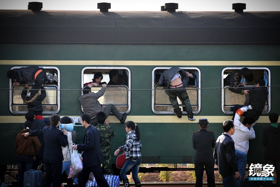 2016年春運(yùn)已經(jīng)拉開(kāi)大幕。作為人類史上規(guī)模最大的、周期性的大遷徙,春運(yùn)在短短的十?dāng)?shù)日內(nèi)的旅客發(fā)送量高達(dá)數(shù)十億人次。在此期間,許許多多的人們經(jīng)歷千辛萬(wàn)苦,穿過(guò)大半個(gè)中國(guó)回家過(guò)年。而每當(dāng)此時(shí),隨著歸鄉(xiāng)的游子們紛紛匯入春運(yùn)大潮,一幕幕的人在“囧”途也隨之上演。圖為2009年1月12日,惠州火車站,來(lái)不及上車的旅客,拉的拉,扶的扶,從車窗爬進(jìn)車廂。圖片來(lái)源:央視網(wǎng)
