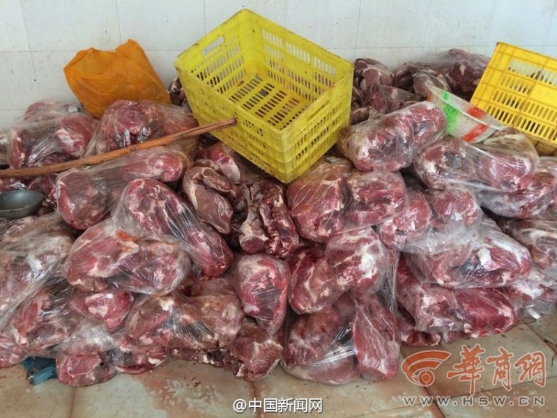近日,陜西省涇陽縣執(zhí)法部門查處了一家鹵制品加工點。作坊里存放的豬肝已長滿了綠色霉點,散發(fā)臭味。包裝完好的豬心上顯示產(chǎn)地是美國弗吉尼亞州,都過了保質(zhì)期?繅Φ牡厣线堆放著千余斤冷凍肉類。