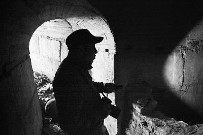 地道內(nèi)一片漆黑,尹喜軍持手電探秘