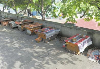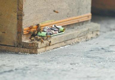 車(chē)棚頂上養(yǎng)的蜜蜂曾蜇傷多位小區(qū)居民。