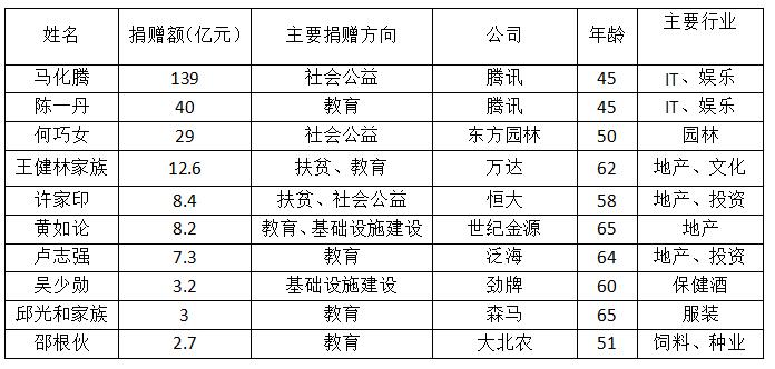 《2016胡潤慈善榜》前十名慈善家