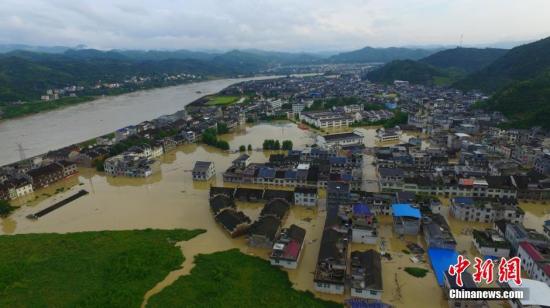 6月19日8時(shí)至20日4時(shí),受氣象因素影響,湖南龍山縣中、北部區(qū)域出現(xiàn)強(qiáng)降雨過程。以出土大量秦簡名揚(yáng)海內(nèi)外的龍山縣里耶古鎮(zhèn)堤防于20日15時(shí)許發(fā)生漫潰。此次強(qiáng)降雨共造成龍山縣12個(gè)鄉(xiāng)鎮(zhèn)92村4.87萬人受災(zāi),緊急轉(zhuǎn)移人口0.323萬人,房屋受損48間,直接經(jīng)濟(jì)損失7300余萬元。目前沒有人員傷亡。圖為航拍龍山里耶水災(zāi)。 陳宇馳 攝