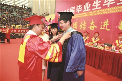 “哇!”“好羨慕!”“校長親自送戒指啊!”“人生贏家!”……昨天上午,在南京中醫(yī)藥大學2016屆畢業(yè)生畢業(yè)典禮暨學位授予儀式上,3640名本科生、研究生、留學生濟濟一堂。當碩士研究生、一對學霸情侶蔣日磊和李倩走上臺之后,現(xiàn)場一陣轟動,南中醫(yī)校長胡剛為他們送上特別的禮物——一對刻有姓名、學號的戒指。