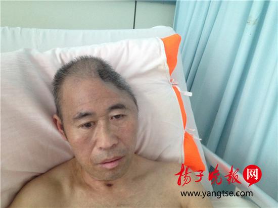 48歲的電焊工楊以華在一次做活時(shí),不慎受傷倒地,頭部和身上多處受傷,手術(shù)后左邊腦地凹下去了一大塊,相當(dāng)于一小半腦袋沒了,小他20歲的妻子在照顧他一周后,離開了再也沒有回來。27日上午,在宿遷市人民醫(yī)院外科一間病房內(nèi),經(jīng)過幾個(gè)月的治療,楊以華已恢復(fù)了部分意識,但還不能說話,一提起他的妻子,他忍不住嗚嗚哭出了聲。