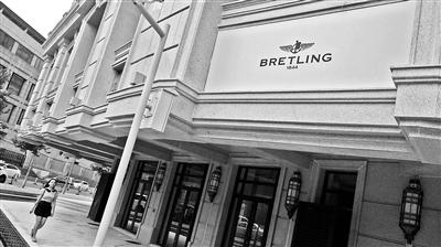 “殘存”的某高級腕表招牌正確拼寫應(yīng)為breitling,但該牌匾上赫然寫著bretling 攝影/本報記者 魏彤