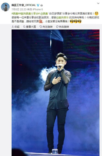 資料圖:魏晨舉辦分享會。(曹潔微博截圖)