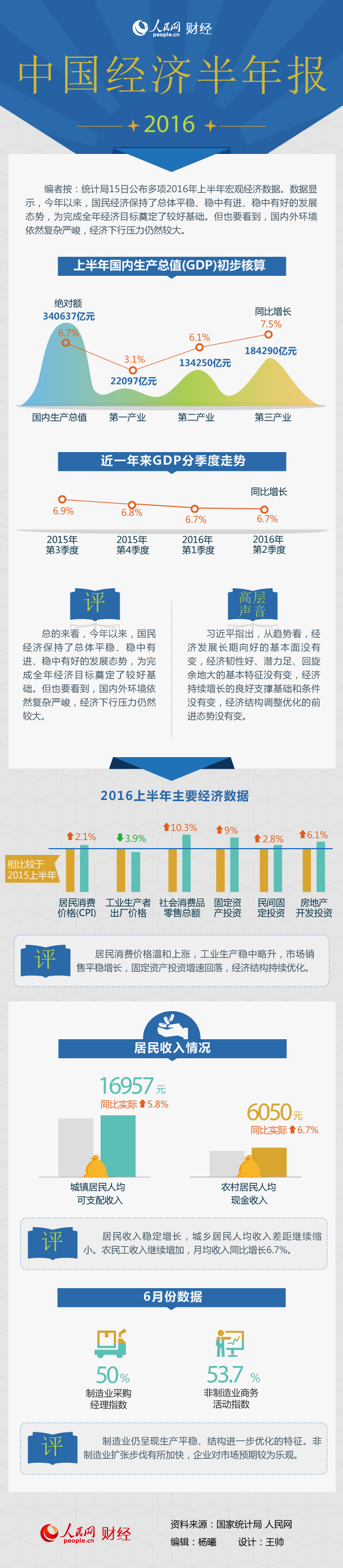 一張圖讀懂2016上半年多項宏觀經(jīng)濟(jì)數(shù)據(jù)--財經(jīng)--人民網(wǎng)