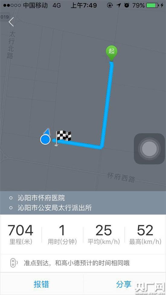 最終派出120急救車(chē)的是沁陽(yáng)市人民醫(yī)院,導(dǎo)航軟件顯示,該院距離太行派出所1.3公里,開(kāi)車(chē)3分鐘。而最近的懷府醫(yī)院,距離太行派出所只有765米,開(kāi)車(chē)1分鐘。