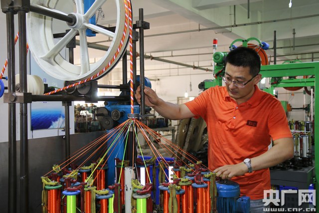 央廣網(wǎng)青島7月19日消息(記者 王晶)“研發(fā)新型繩纜時(shí),曾在車間待過2天零一夜沒有出去,有時(shí)累了就直接抱著纜繩睡過去了”。7月19日中午,青島天氣燥熱難忍,海麗雅集團(tuán)80后制繩技師徐連龍帶領(lǐng)記者徑直走向制繩車間,車間內(nèi)噪音高達(dá)80分貝,聽清旁人說話都很費(fèi)力甚至有些刺耳,但卻是徐連龍過去8年來一直堅(jiān)守的研發(fā)“陣地”。