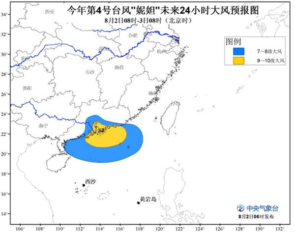 大風(fēng)預(yù)報:8月2日08時至3日08時,南海北部、廣東沿海及珠三角地區(qū)將有7-9級大風(fēng),部分海域和地區(qū)風(fēng)力可達10級,陣風(fēng)11-12級。