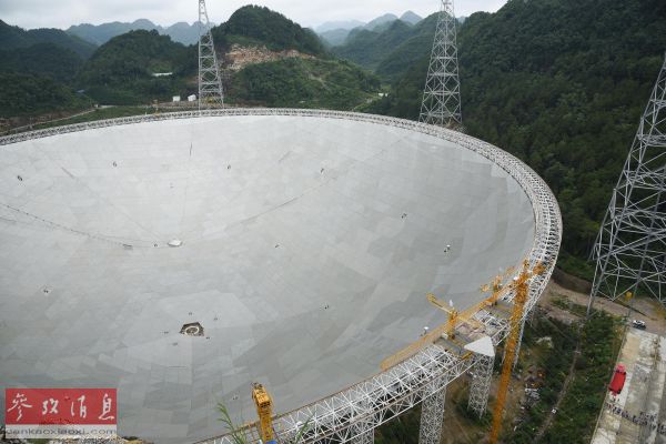 7月3日,世界最大單口徑射電望遠鏡FAST主體工程完工。據介紹,FAST突破了射電望遠鏡的百米極限,它擁有30個足球場大的接收面積,與號稱“地面最大的機器”的德國波恩100米望遠鏡相比,靈敏度提高約10倍。它將在未來10至20年保持世界一流設備的地位。新華社記者劉續(xù)攝