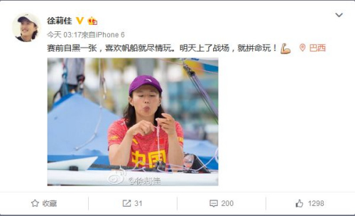 北京時(shí)間8日凌晨,倫敦奧運(yùn)冠軍徐莉佳在微博上十分活躍,不僅給網(wǎng)友普及帆船帆板項(xiàng)目的知識(shí),還曬出了一張自己的照片,并稱“賽前自黑一張,喜歡帆船就盡情玩。明天上了戰(zhàn)場(chǎng),就拼命玩!”