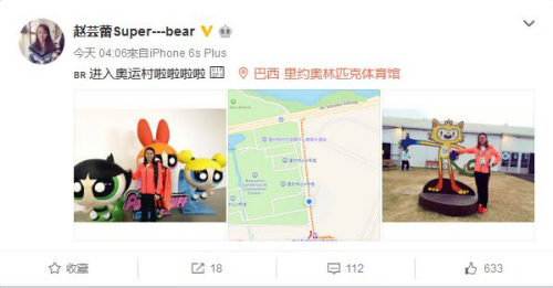 趙蕓蕾的粉絲親切的稱她為熊姐,網(wǎng)友們希望趙蕓蕾能圓夢(mèng)里約,紛紛評(píng)論“趕快適應(yīng)里約羽球場(chǎng)地,期待熊姐的里約衛(wèi)冕之路”“加油熊姐!健健康康,平平安安!我們?yōu)槟慵佑,愿你?mèng)圓里約!”。