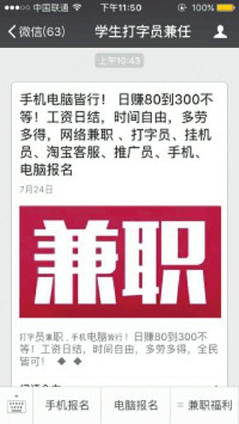 小魏在微信上搜索到的“學生打字員兼任”的公眾號頁面。