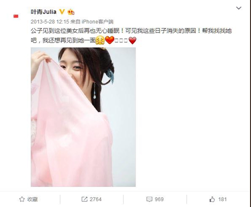 當(dāng)時,葉青還曾在微博曬出一張身穿古代服飾的清新美照,粉絲紛紛猜測就是新戲《蔓蔓青蘿》定妝照。然而,該劇自此卻再無動靜。