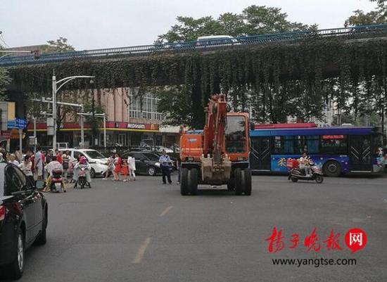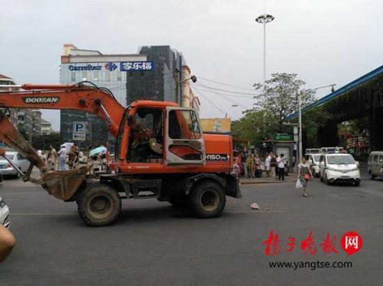 21日下午4點(diǎn)鐘,一輛無牌上路的挖掘機(jī)開到鼓樓區(qū)大橋南路與花家橋路口右轉(zhuǎn)彎時,將一名過街行人碾壓致死,警方到場后將司機(jī)控制住。