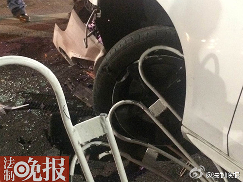 奧迪剮護欄后正撞對面車 車主棄車而逃
