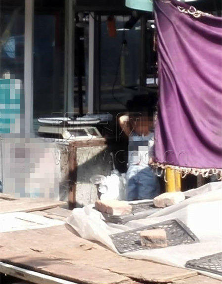 就在記者轉(zhuǎn)身正準(zhǔn)備走開(kāi)時(shí)候,記者發(fā)現(xiàn)小女孩又把藏在身后的香煙熟練的叼在嘴巴上,徑直走進(jìn)了菜販的攤位里面,在里面繼續(xù)抽煙。