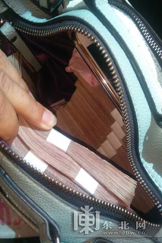 女子裝有十二萬現(xiàn)金和手機(jī)的包。