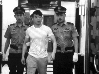喬宇被法警帶入法庭受審。京華時(shí)報(bào)記者鄭羽佳攝