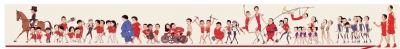 畫卷以跨在馬背上的騎士華天打頭陣,依據(jù)比較的時間順序,共畫74個人物,除了參賽運動員外,卷尾三人是本次奧運會上出鏡率最高的教練:郎平、劉國梁及孔令輝。選擇華天作為卷首,主要是基于兩個想法,“第一是受華天的個人事跡影響,其次是想表達一馬當(dāng)先的寓意”。于春華希望我們的健兒在比賽中一馬當(dāng)先。