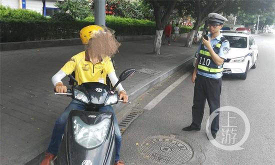 當日下午3點過,沙坪壩110快處民警陳耀巡邏至石小路轉盤附近時,突然發(fā)現前方20米處有一男子騎著電瓶車逆向穿行,惹得正常行駛的車輛紛紛鳴笛避讓。見此情形,民警立即將電瓶車攔停。