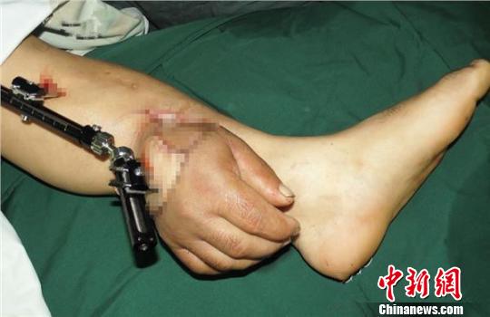 該醫(yī)院手足顯微外科專家團(tuán)隊(duì)經(jīng)過(guò)反復(fù)論證,為患者制定了寄養(yǎng)再植方案。當(dāng)日,經(jīng)過(guò)8個(gè)小時(shí)手術(shù),醫(yī)生為患者右腕進(jìn)行清創(chuàng),并讓小腿血管和腕部動(dòng)脈血管吻合,然后外固定支架固定掌骨于小腿上,小腿島狀皮瓣修復(fù)手背創(chuàng)面再次吻合剩余動(dòng)靜脈血管,前臂殘端清創(chuàng)血管神經(jīng)肌腱標(biāo)記后VSD負(fù)壓吸引覆蓋創(chuàng)面,將斷手“種在”了小腿上。
