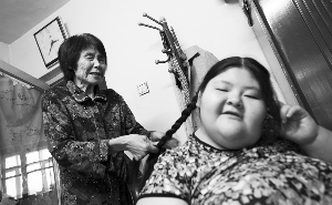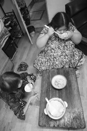 據(jù)李景芹介紹,天鴻去年年初體重還不到100公斤,雖然平時(shí)已經(jīng)很注意節(jié)食,可是她發(fā)現(xiàn),天鴻胖的比減的多。她注意到,這兩年天鴻胖得更快了,每年體重都增加25公斤左右。12歲的天鴻也很愛美,愿意穿顏色鮮艷的衣服,身上的這件碎花裙是她最喜歡的,但她平時(shí)穿的衣服多是別人給的,而且都是大人的衣服,顏色和樣式她都不喜歡。她最不喜歡的就是聽到別人說她胖,前段時(shí)間還常發(fā)脾氣!坝妙^撞墻,說她這么胖,減不下來了,也不能去上學(xué),不想活了。”李景芹說到這兒眼圈紅了。不上學(xué)后,天鴻也知道自己胖,家里經(jīng)濟(jì)又不好,鄰居李奶奶曾和天鴻開玩笑,要帶她去附近早市要飯,而天鴻也當(dāng)真了,回來讓奶奶給她準(zhǔn)備一個(gè)盒子,她說要飯也行,就有錢治病就能瘦了,也有錢上學(xué)了。天鴻沒有去要飯,可李景芹每當(dāng)想起天鴻當(dāng)時(shí)認(rèn)真的表情,就會(huì)偷偷流眼淚。