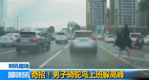 每每到了上下班巔峰時(shí)刻,司機(jī)們都得忍受十幾分鐘前進(jìn)不了幾百公尺的塞車時(shí)段,總是磨掉不少人的耐心。哈薩克斯坦日前出現(xiàn)了一幕讓所有不耐煩的司機(jī)爆笑的 場面。通過視頻可以看到,在幾乎動(dòng)彈不得的車陣中,行車記錄儀車主的右手邊突然沖出了一名騎著鴕鳥的男子,就這樣高速穿梭在車陣中,讓所有司機(jī)當(dāng)場看傻眼。行車記錄儀車主則忍不住當(dāng)場爆笑出來。