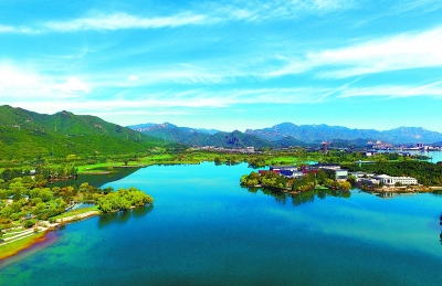 藍(lán)天白云下的雁棲湖空氣清新、美如畫卷。本報特約攝影卜向東