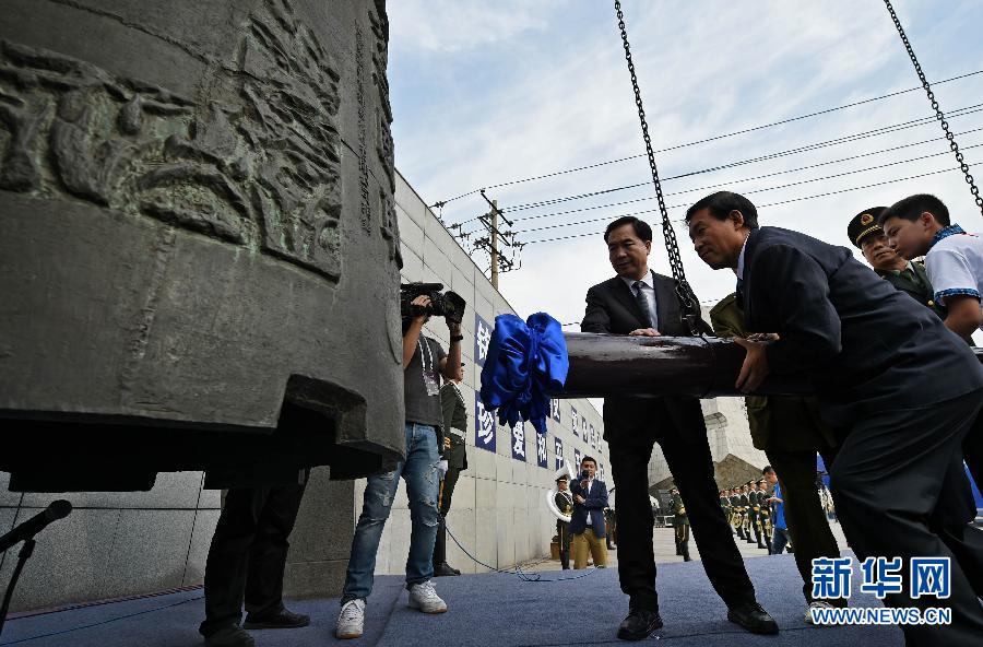 9月18日,在沈陽參加儀式的各界代表共同撞響“勿忘國恥”警世鐘。新華社記者 姚劍鋒 攝
