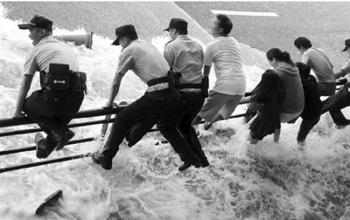“美女壩的回頭潮,把岸邊人家停的自行車都沖跑了!
