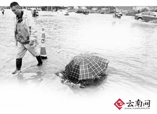 一夜暴雨過后,昆明主城區(qū)出現(xiàn)了多個淹積水點,早高峰也因此比平時更為擁堵。昨天的降水主要集中在主城南部和西部,南市區(qū)的前衛(wèi)西路、關上日新路交叉口、廣福路口都是淹積水的重災區(qū),迎海路、閘口路等多條道路出現(xiàn)約40厘米深的淹積水,周邊多個小區(qū)開啟了“劃船”模式。
