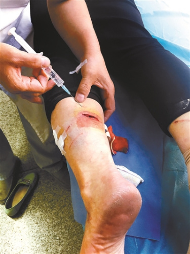 在等候打針的隊(duì)伍中,北青報(bào)記者還找到其他三位被這只狗咬傷的市民。這些市民受傷的部位大多在小腿處,可以清晰地看到被狗牙咬過的凹痕。