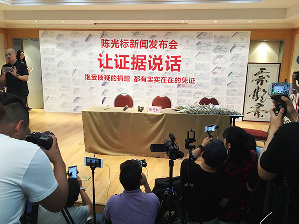 原標(biāo)題:陳光標(biāo)南京發(fā)布會回應(yīng)詐捐