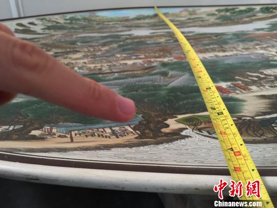 林禮騰向記者展示瓷盤的直徑!£悊⑷ 攝