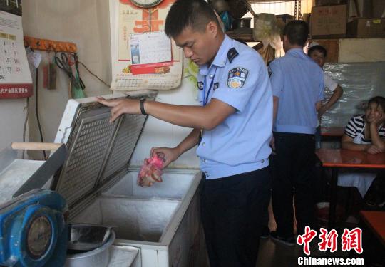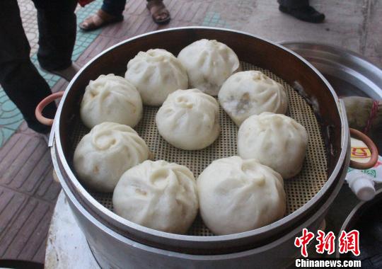 圖為:當(dāng)?shù)卦绮偷晁鄣奶砑恿撕X“泡打粉”的包子。 義烏警方供圖