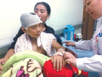 小杰在醫(yī)院接受治療。