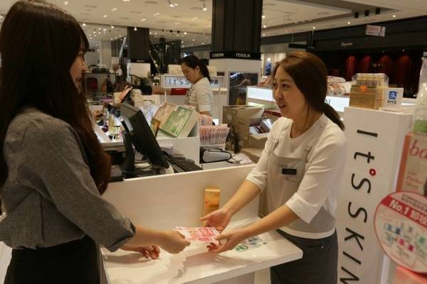 9月22日,在明洞一家化妝品商店使用人民幣購物的中國(guó)游客。新華社記者姚琪琳攝