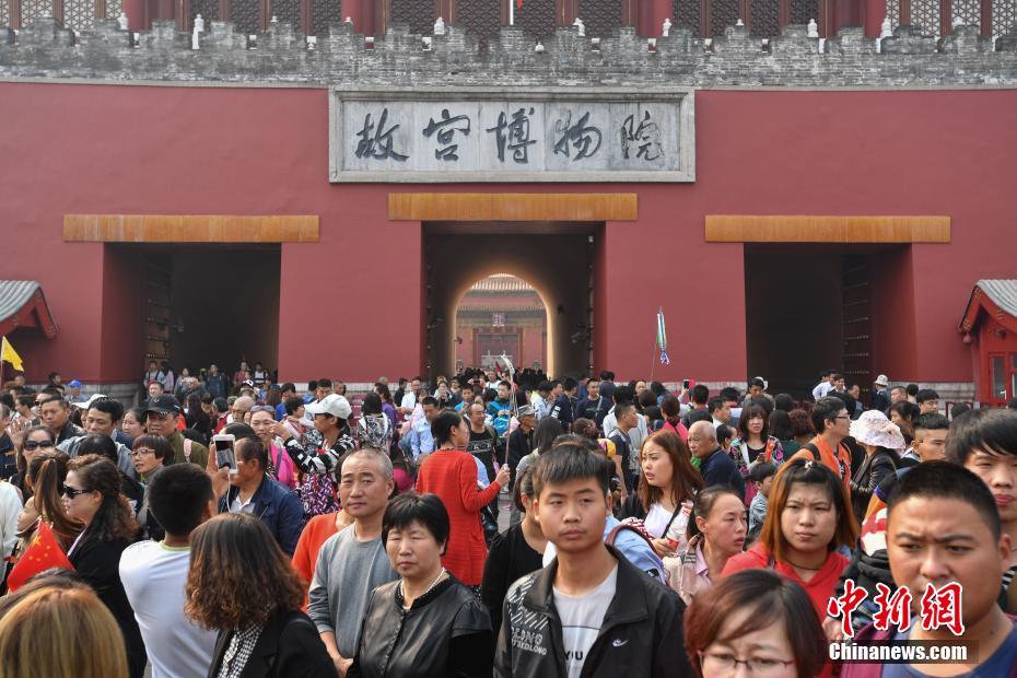 10月1日,“十一”假期首日,北京故宮博物院門前人潮涌動。中新社記者 崔楠 攝