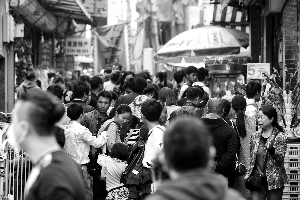 前日下午,位于前門的廊坊二條胡同中游人摩肩接踵。北京晨報(bào)記者 史春陽(yáng) 攝