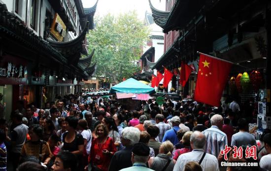 資料圖:10月3日,上海各景點(diǎn)迎來大客流,城隍廟游人如織,秩序井然。 中新社記者 湯彥俊 攝