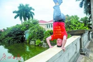 倒立是何葵明最推崇的養(yǎng)生方法。