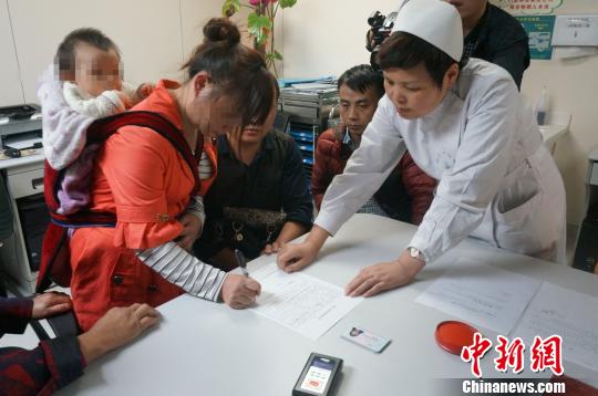 10日晚間,袁明貴的妻子在醫(yī)護人員、紅十字會工作人員的見證下簽署中國人體器官捐獻登記表!№n章云 攝